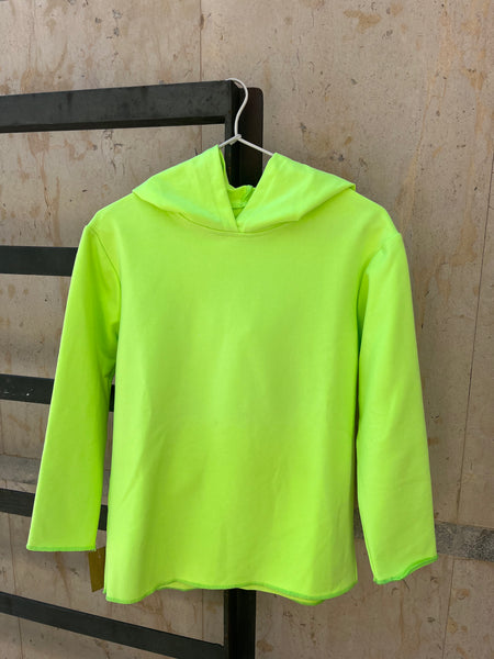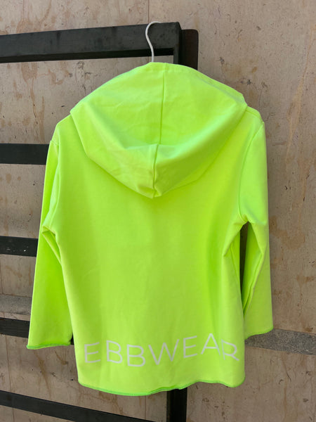 Sudadera Noga en color lima, con capucha y tejido ultra suave. Estampada con nuestro logo maxi en blanco en la espalda!